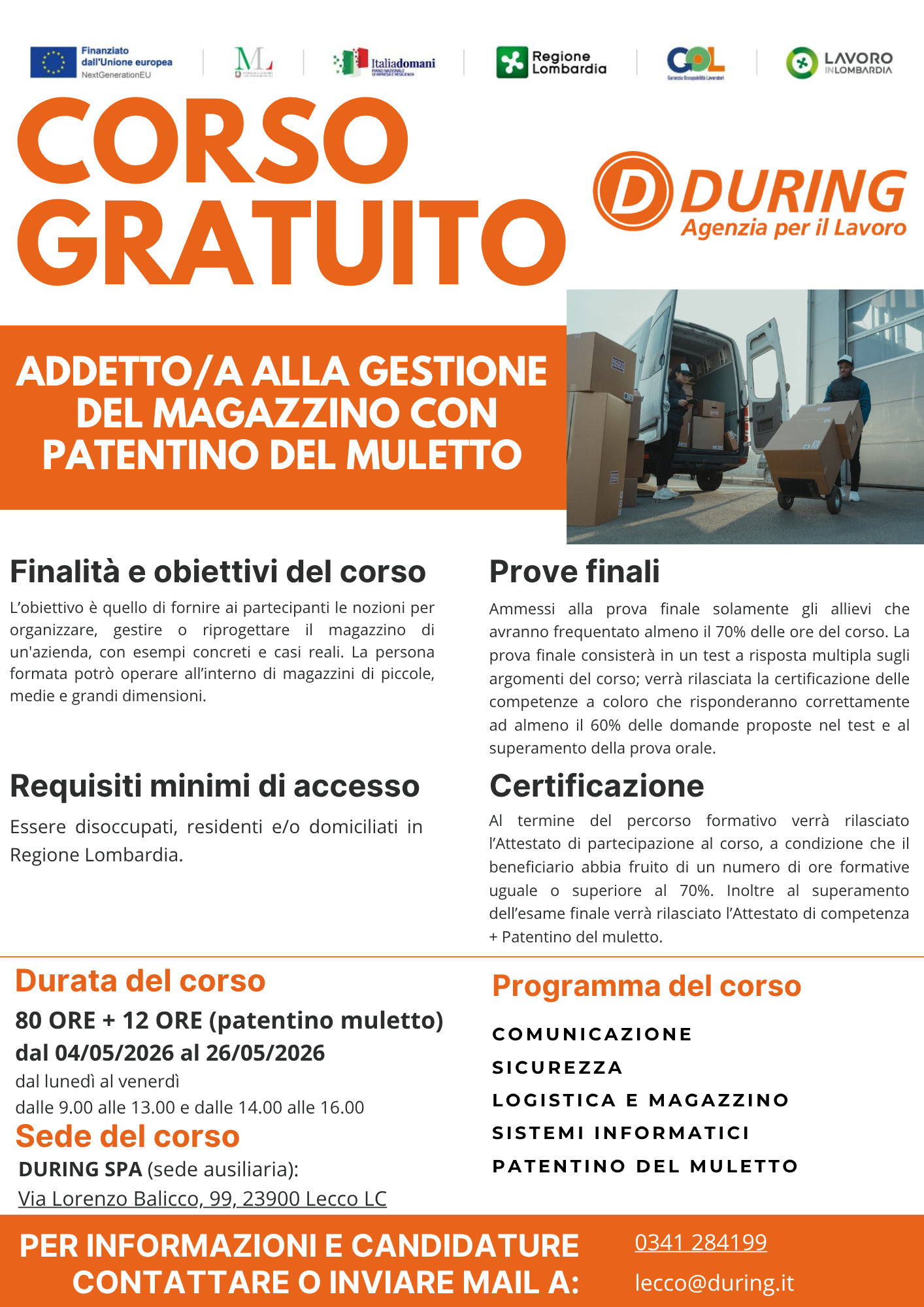 La persona formata potrà operare all'interno di magazzini di piccole, medie e grandi dimensioni.