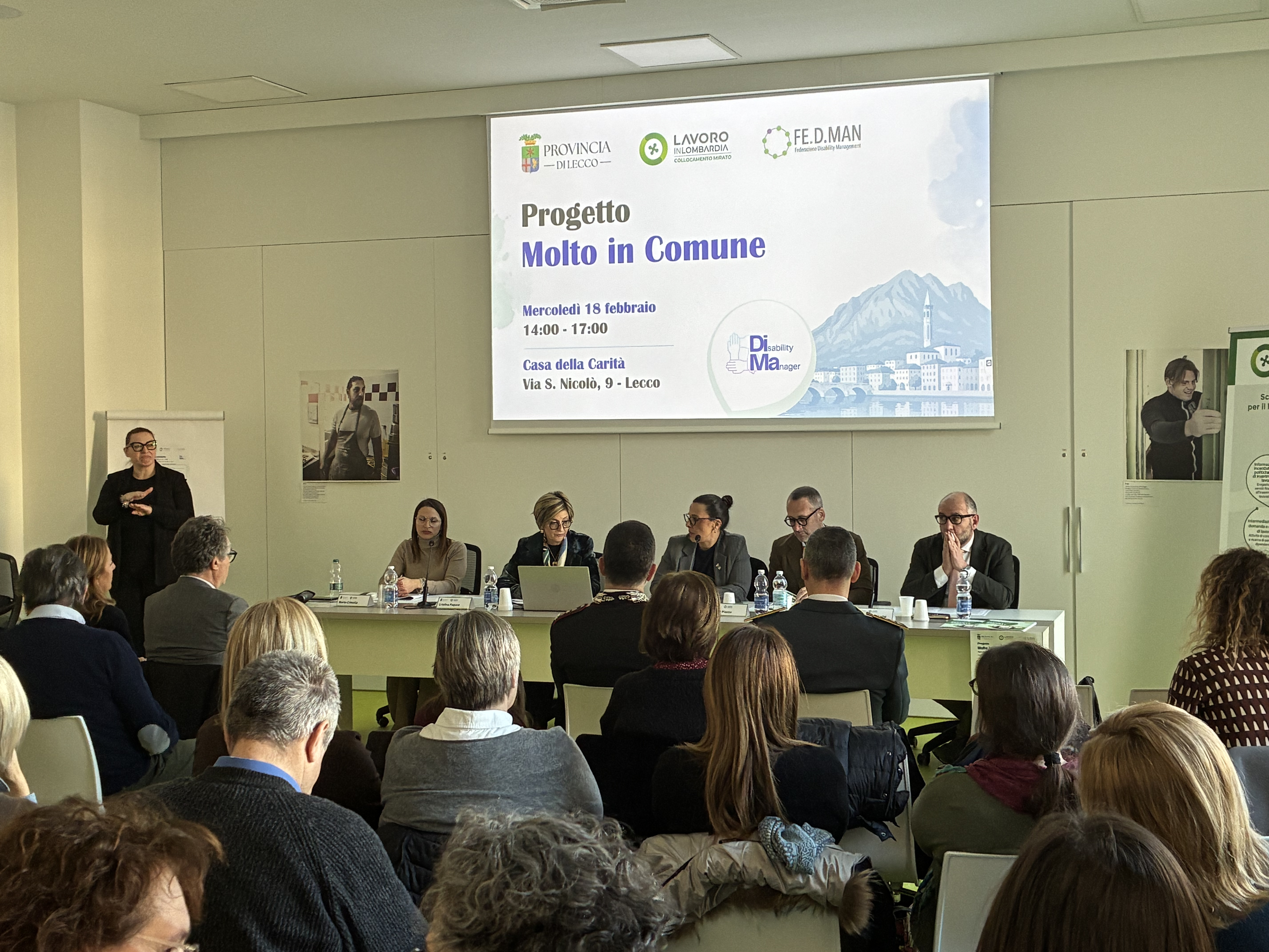 Nel pomeriggio di ieri, mercoledì 18 febbraio, nella Casa della Carità di Lecco, la Provincia di Lecco ha organizzato il convegno di restituzione del progetto Molto in Comune, rivolto alla cittadinanza, agli amministratori, ai tecnici e a tutti gli interessati ai temi dell’inclusione nella pubblica amministrazione.