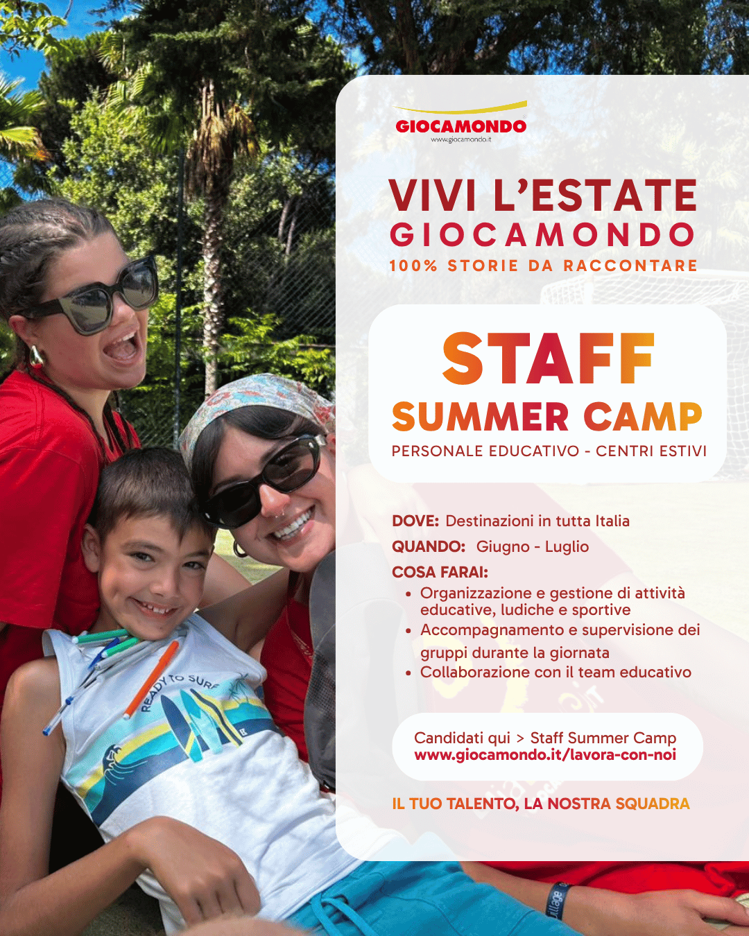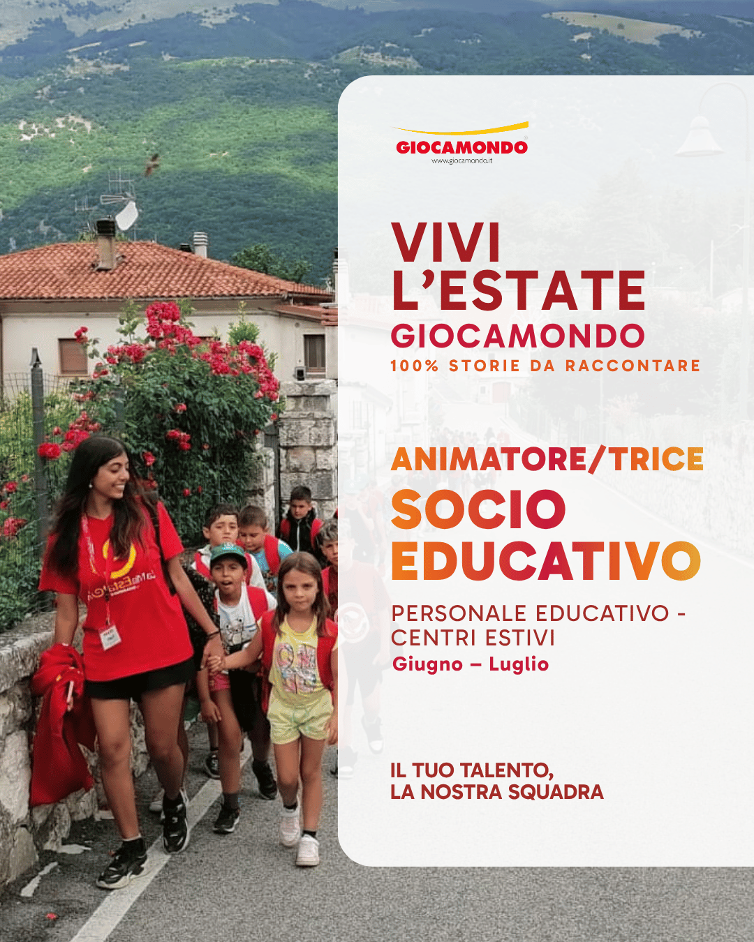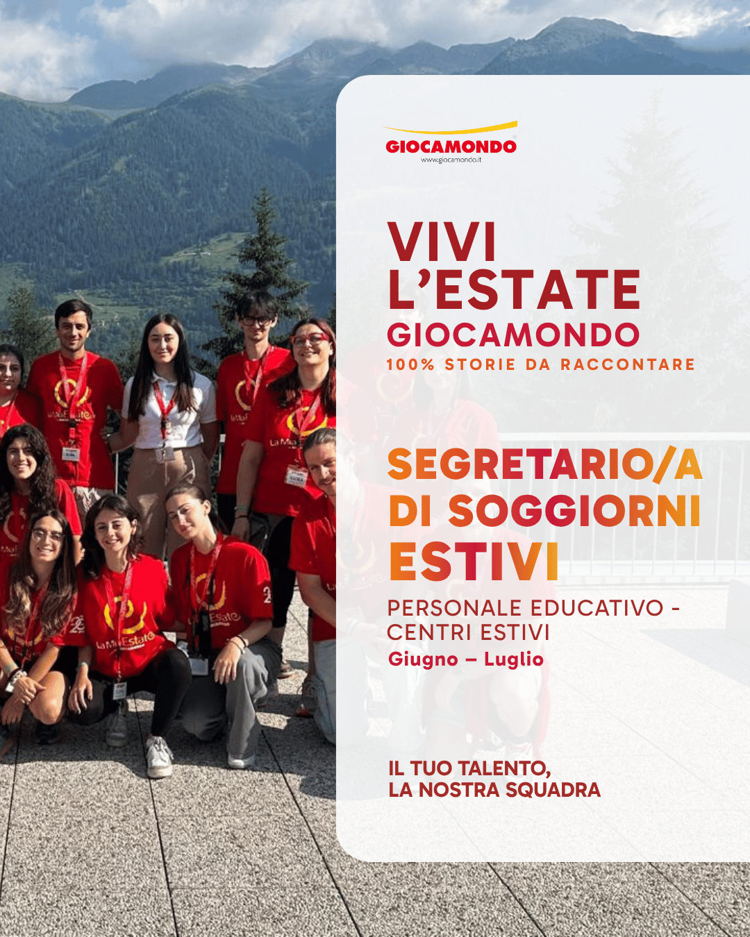 Giocamondo, azienda di Ascoli Piceno specializzata in vacanze studio socio-educative, ricerca personale per i Summer Camp 2026.